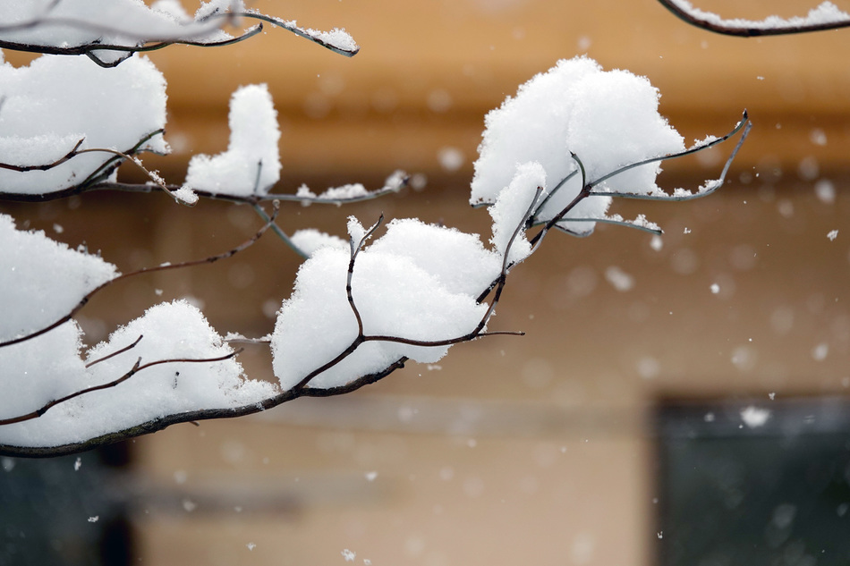 (↓午前10時頃。枝にはこれくらい積もっていた)
