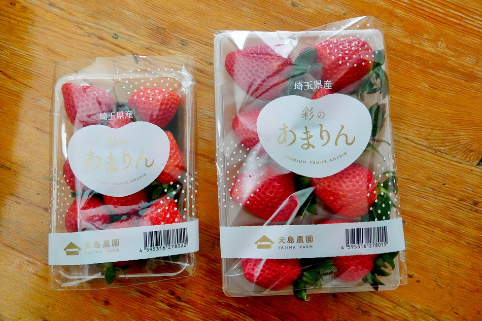 (↓左が普通に売っているパック。比べると、右のイチゴの巨大さが…笑)