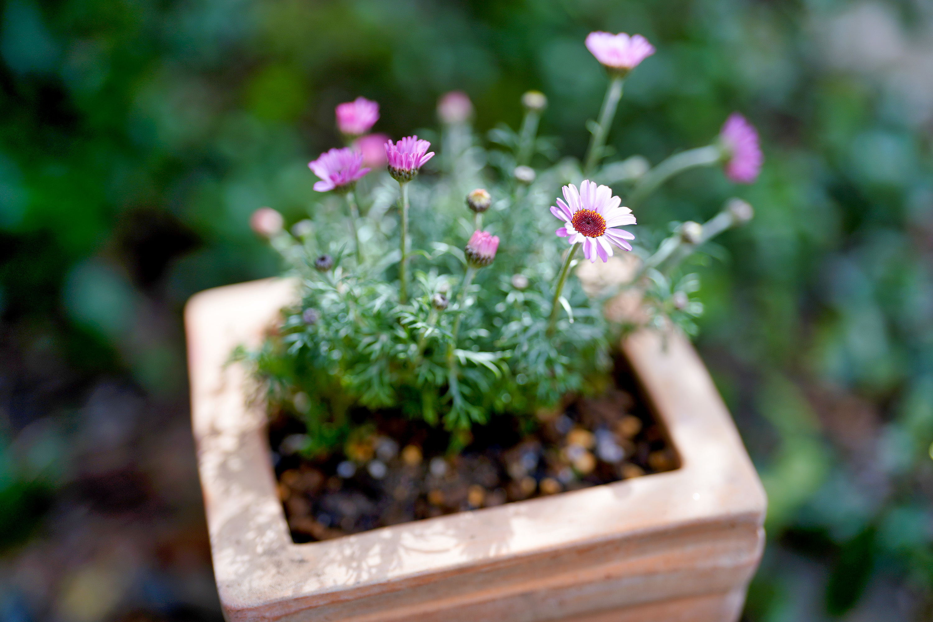 今日は、午前も午後も庭仕事。先日頂いた鉢に、ローダンセマムを買ってきて植えてみたが、イイ感じ。やはりテラコッタはイイなぁ~。9931歩。
