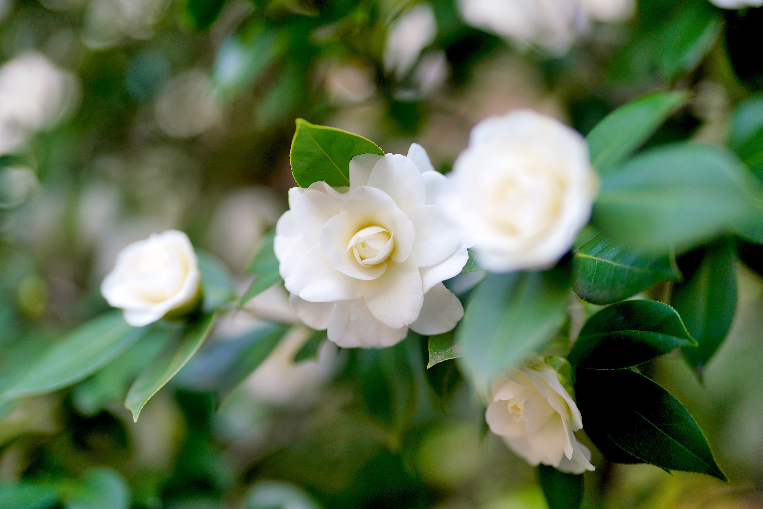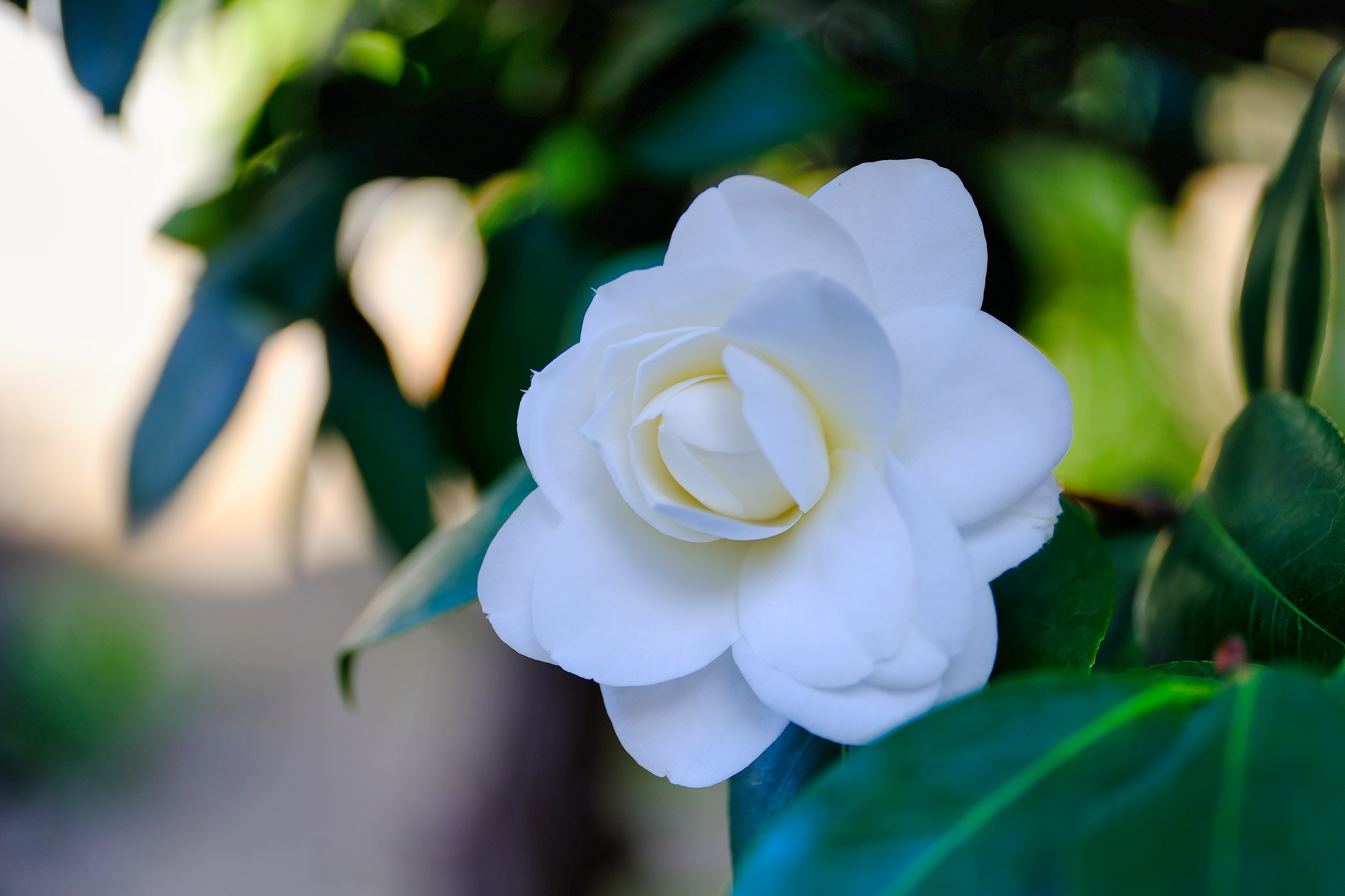 (↓我が庭の自慢の白ツバキが見頃である)